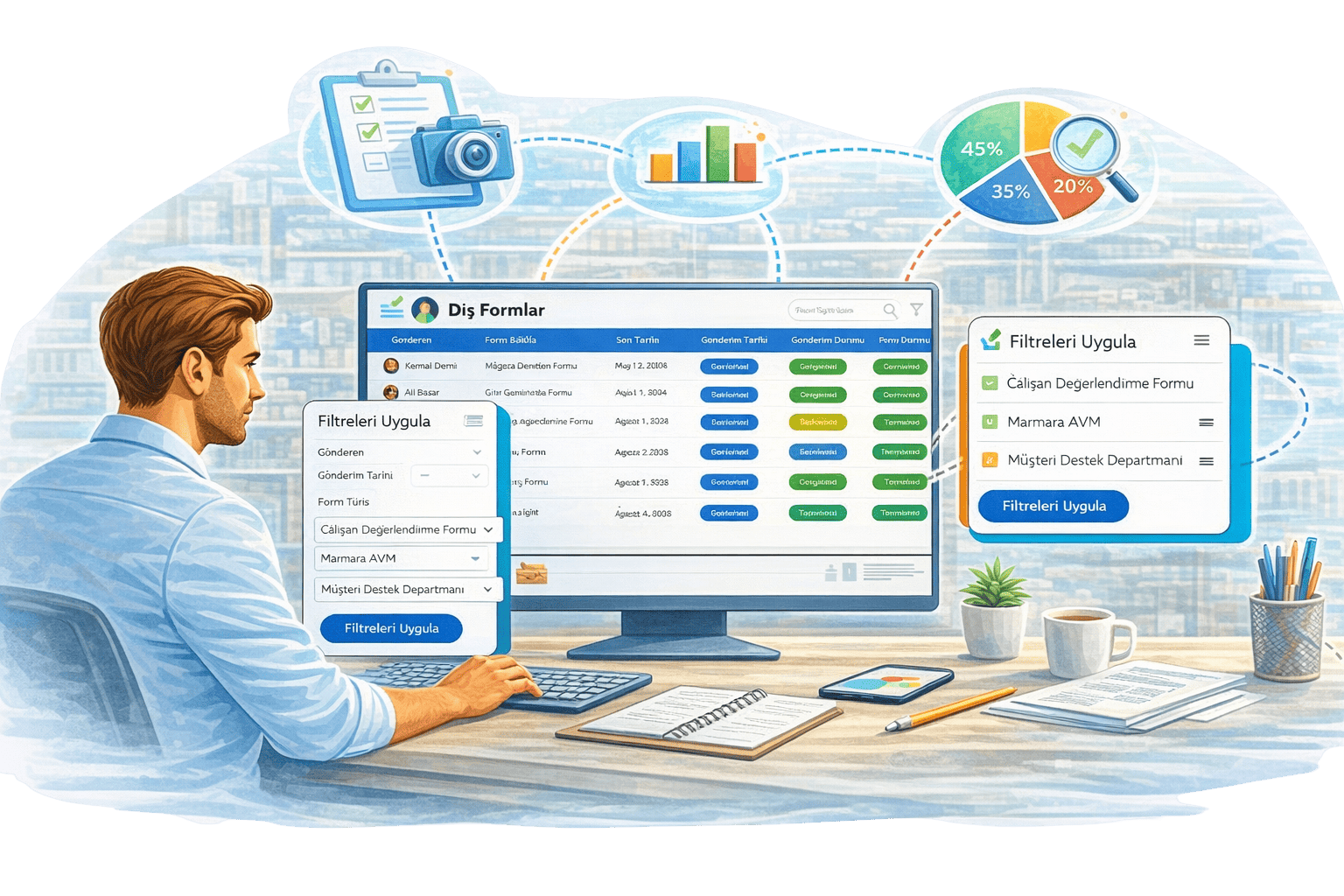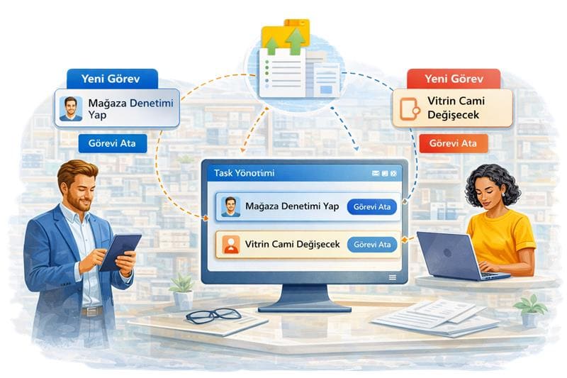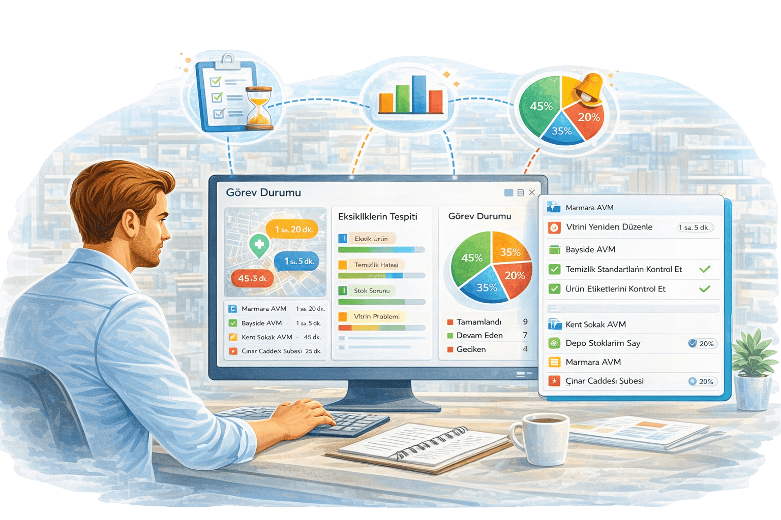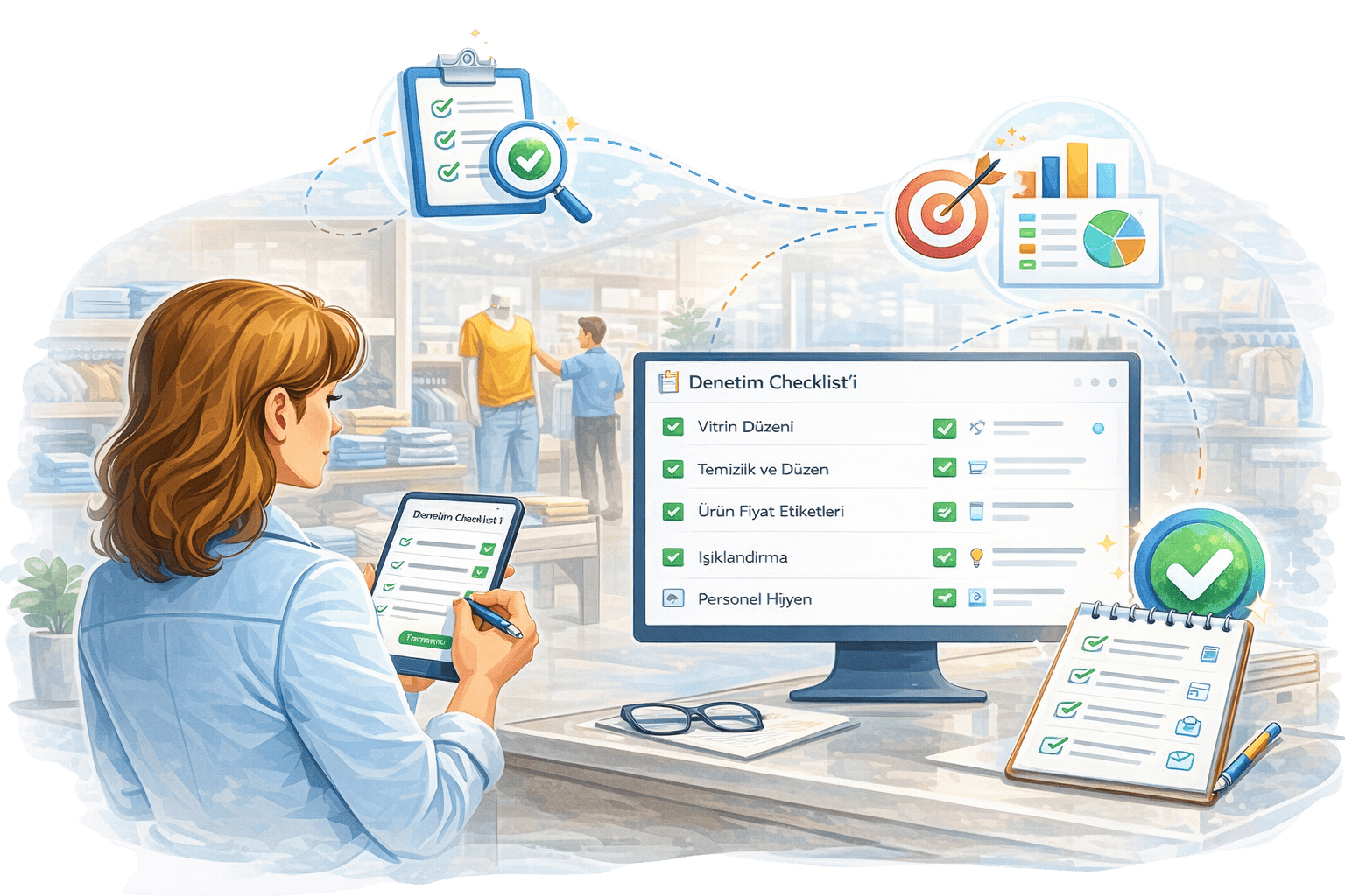 Mağaza ziyaretlerinde tüm denetimler önceden tanımlanmış checklist’ler üzerinden gerçekleştirilir. Vitrin düzeni, personel performansı, mağaza standartları gibi tüm başlıklar sistematik şekilde değerlendirilir. Bu yapı sayesinde denetim süreçleri kişiye bağlı olmaktan çıkar, standart ve sürdürülebilir hale gelir.