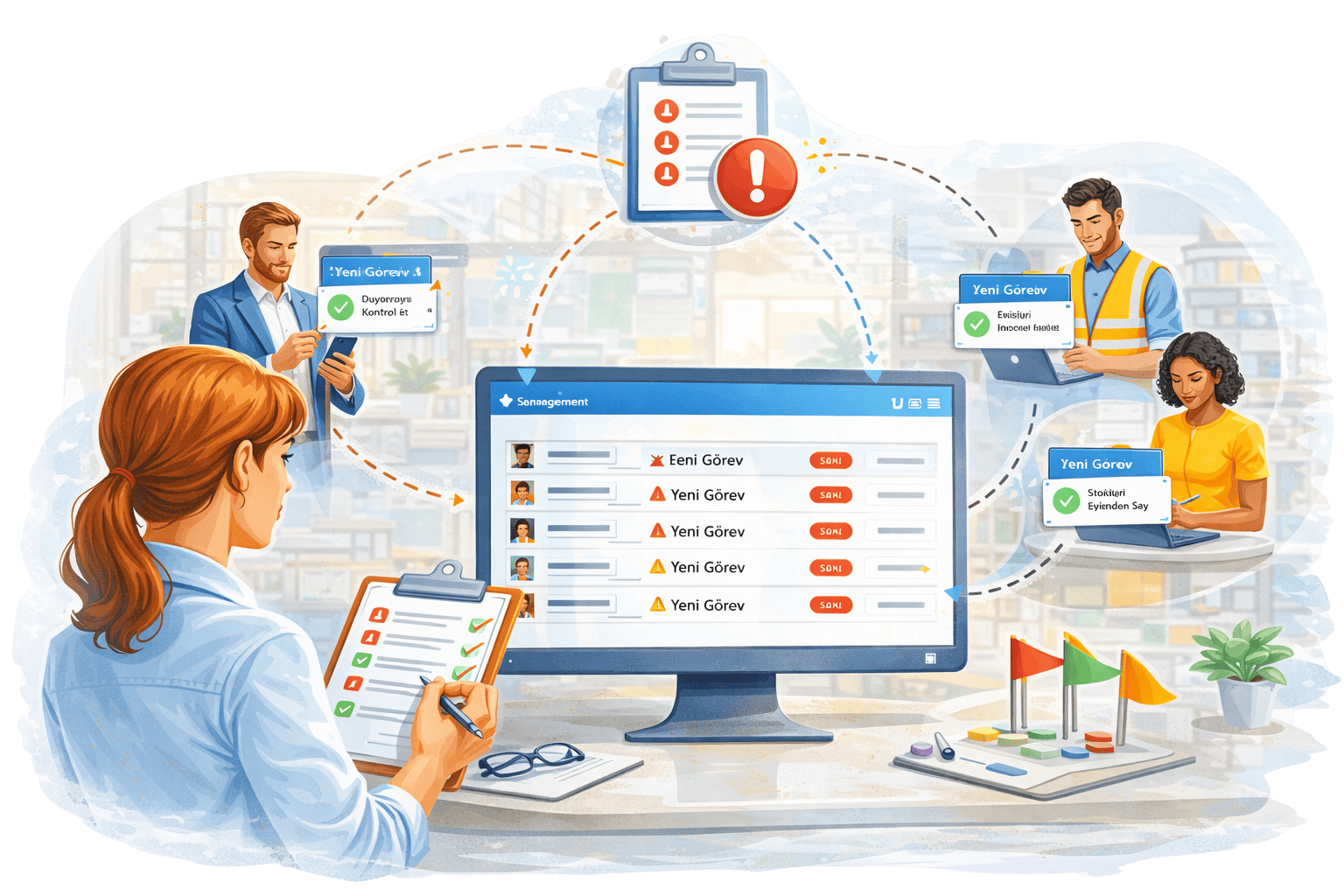 Saha ziyaretlerinde tespit edilen her eksik veya sorun anında görev olarak oluşturulabilir. Görevler ilgili kişi veya departmanlara yönlendirilerek aksiyon süreci başlatılır. Böylece hiçbir sorun gözden kaçmaz ve tüm aksiyonlar kayıt altına alınarak yönetilir.