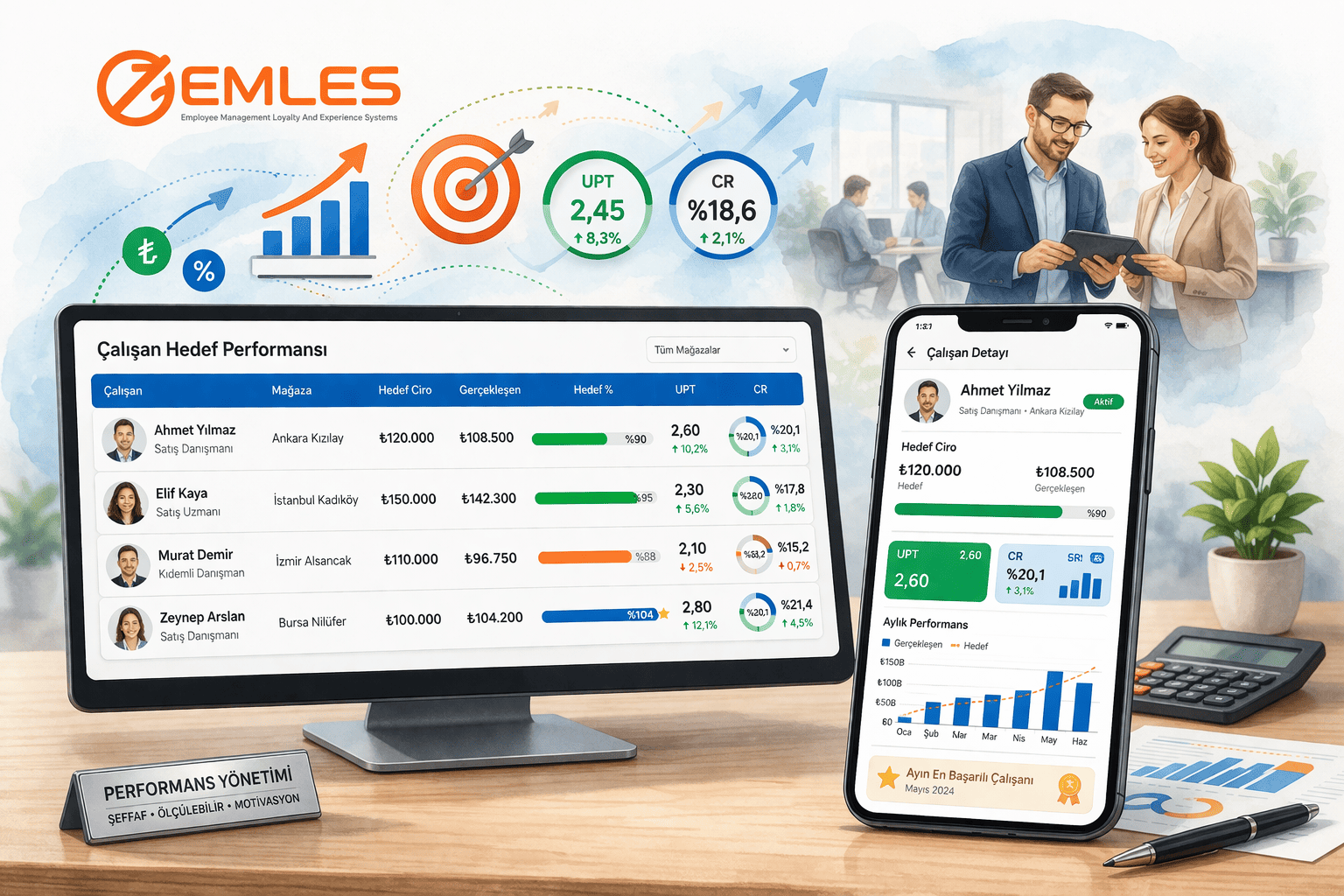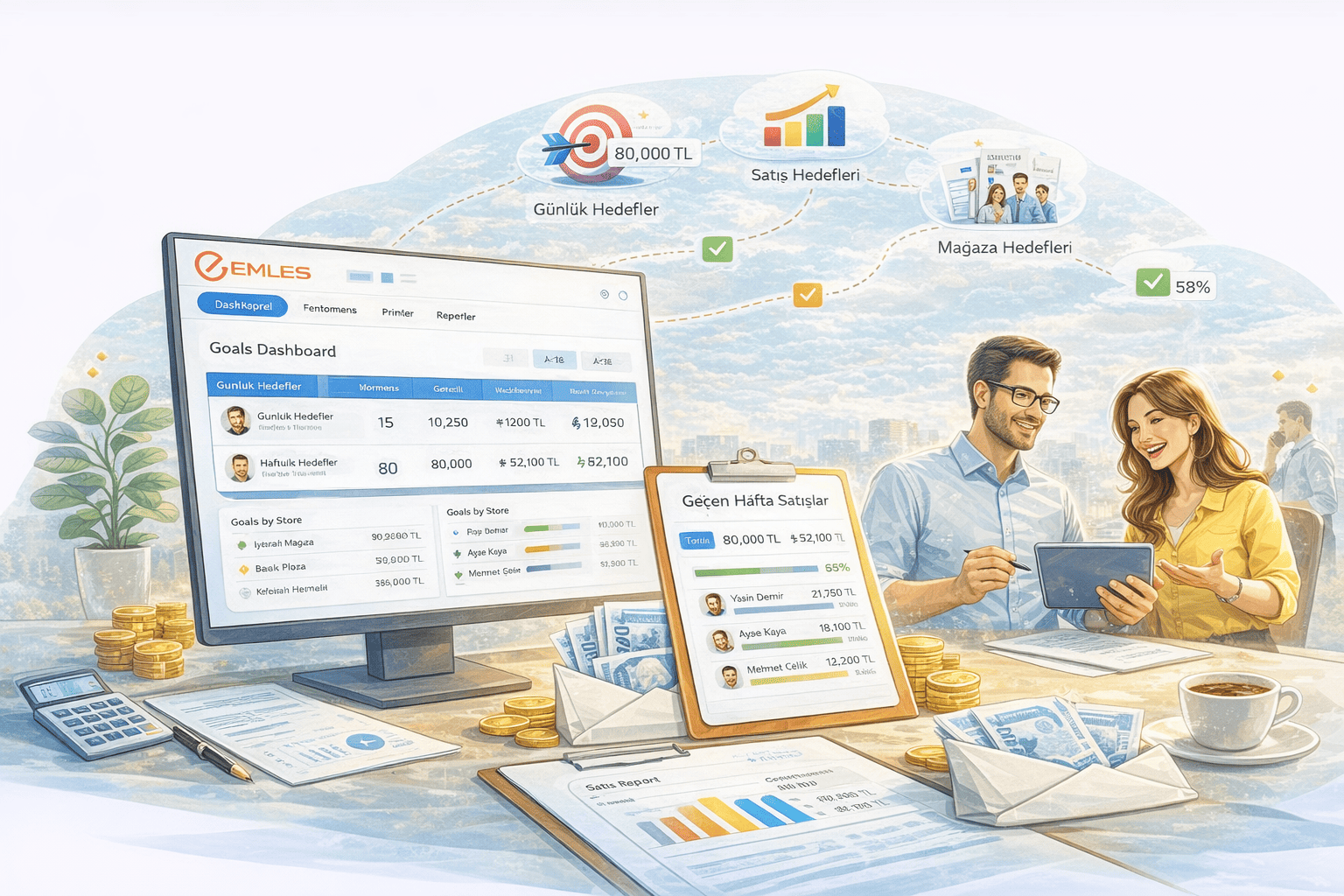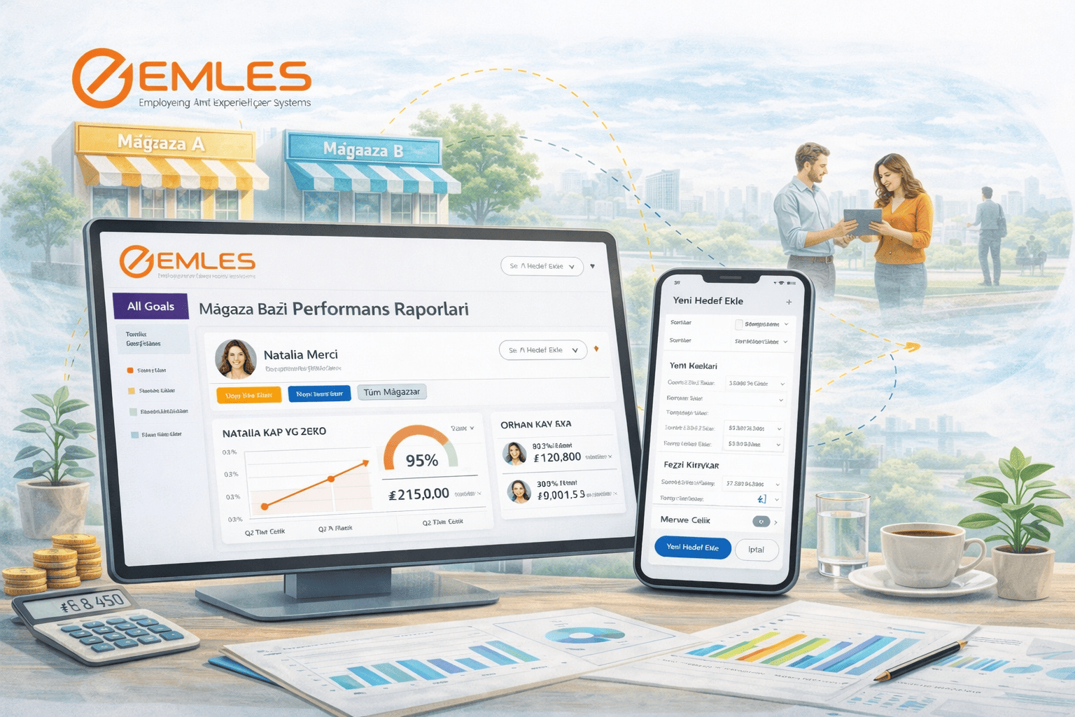 Emles Hedef Yönetimi, işletmelerin satış ve performans hedeflerini belirlemesini, takip etmesini ve analiz etmesini sağlayan kapsamlı bir yönetim modülüdür. Mağaza ve çalışan bazlı hedefler kolayca tanımlanabilir, ERP sistemlerinden alınan verilerle anlık olarak güncellenebilir. Bu sayede yöneticiler hedef gerçekleşmelerini gerçek zamanlı olarak izleyebilir, performansı artırmaya yönelik doğru kararlar alabilir.