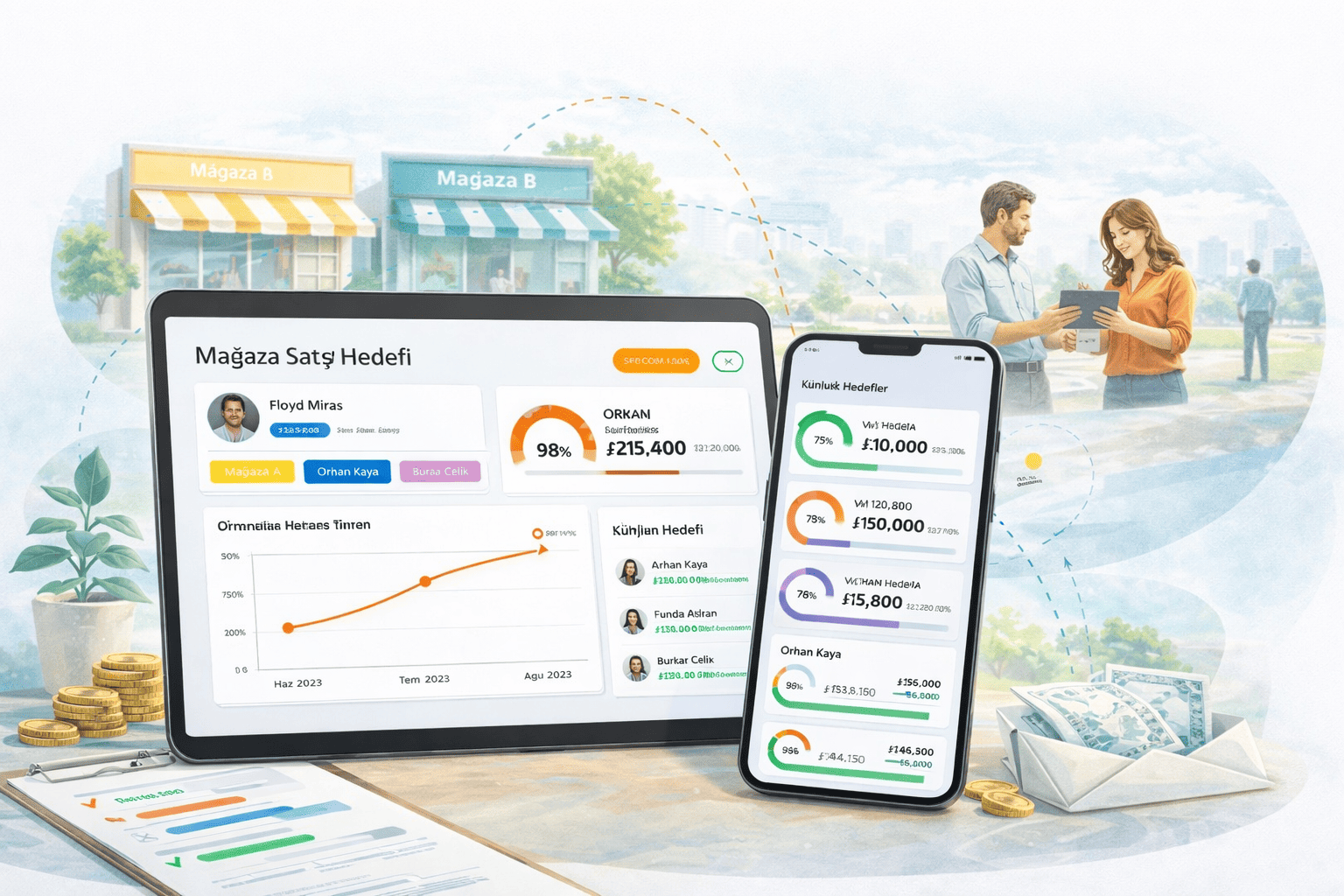Mağazalar ve çalışanlar için günlük, haftalık veya aylık satış hedefleri kolayca belirlenebilir. Belirlenen hedefler sistem üzerinden takip edilerek çalışan performansı ölçülebilir. Bu sayede ekipler daha motive olur ve satış performansı sürekli olarak geliştirilir.