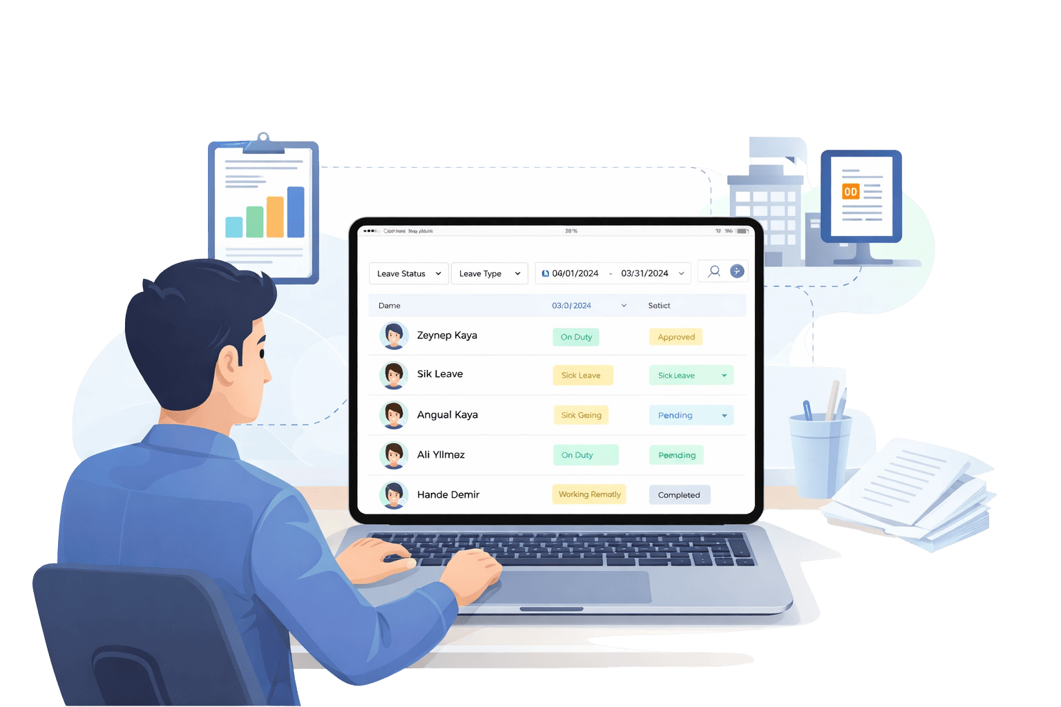 Dijital İzin Yönetimi, çalışanların izin taleplerini hızlıca oluşturmasını ve yöneticilerin tek platform üzerinden kolayca onaylamasını sağlar.