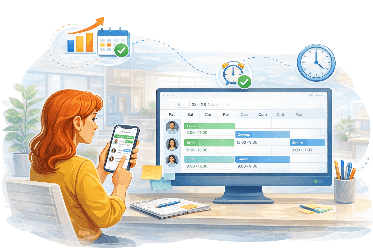 Çalışanlar mobil uygulama üzerinden haftalık vardiya planlarını kolayca görüntüleyebilir. Hangi gün ve hangi saatlerde çalışacaklarını sistem üzerinden takip edebilirler. Bu sayede vardiya planlaması daha düzenli ve anlaşılır hale gelir.