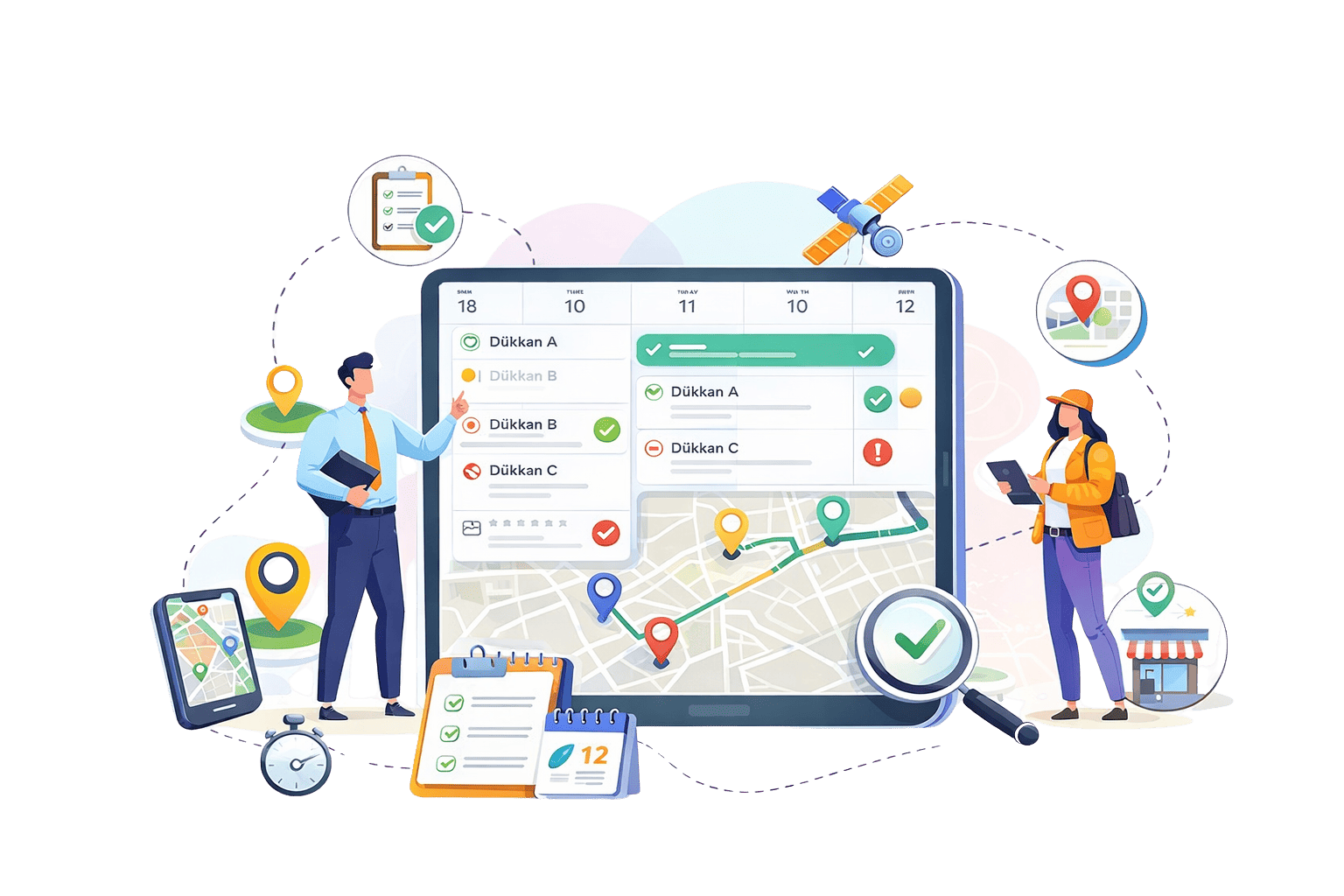 Bölge müdürlerinin gerçekleştireceği mağaza ziyaretleri için rut planları oluşturulabilir. Takvim üzerinden planlanan ziyaretler sayesinde saha operasyonları düzenli ve kontrol edilebilir hale gelir. Bu yapı sayesinde yöneticiler hangi mağazanın ne zaman ziyaret edileceğini önceden planlayabilir ve saha süreçlerini daha verimli yönetebilir.