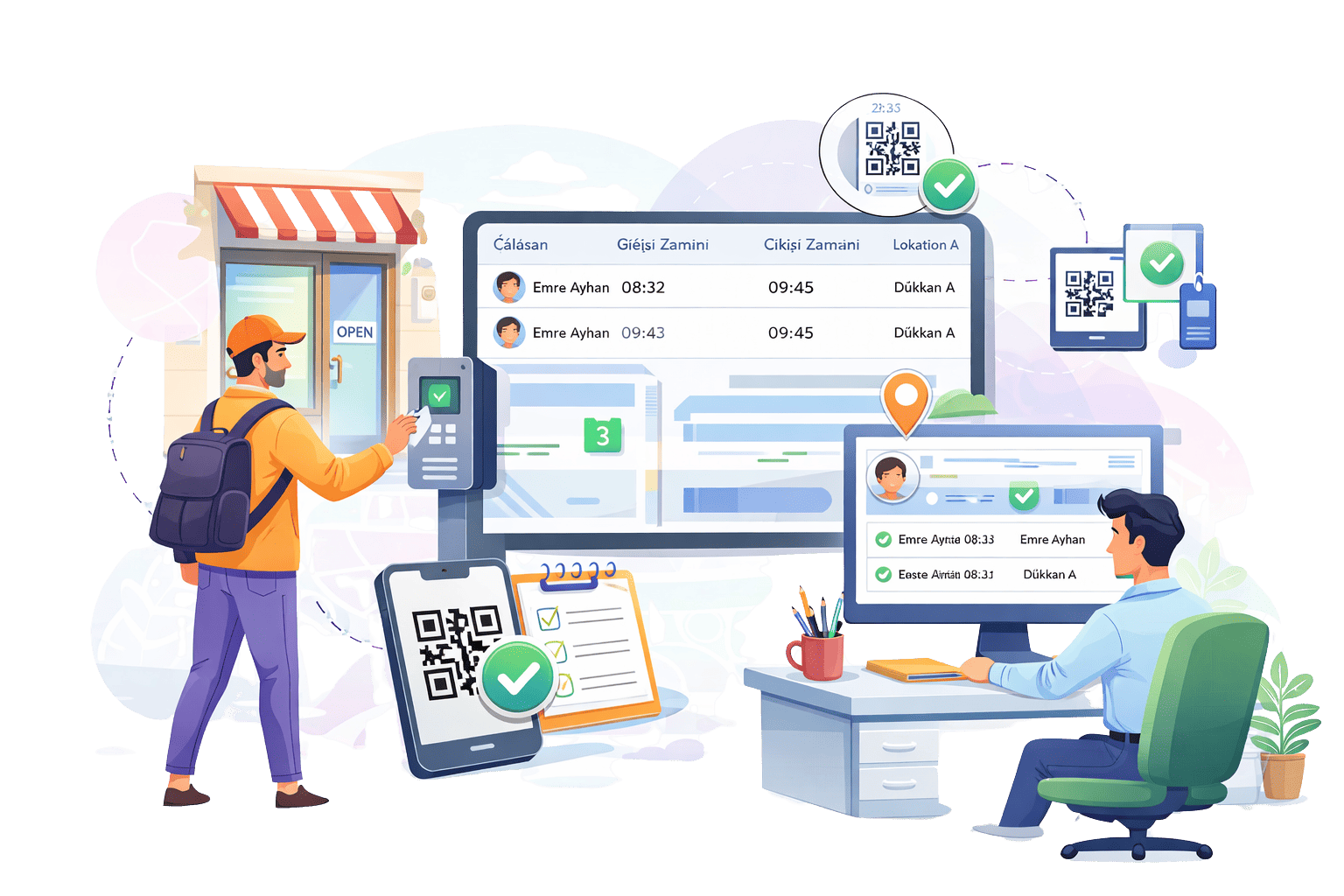 Rut ziyaretleri sırasında tüm giriş-çıkış hareketleri sistem üzerinde kayıt altına alınır. Personel giriş-çıkış sistemleri veya mobil QR okuma yöntemleri ile ziyaret süreçleri kolayca takip edilebilir. Böylece mağaza ziyaretleri ve saha hareketleri tek platform üzerinden izlenebilir.