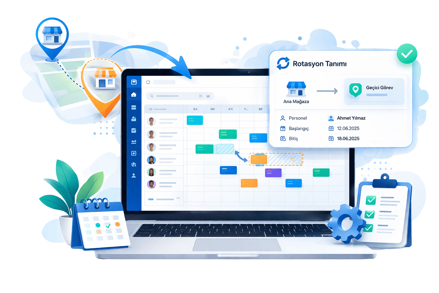 Personelin farklı mağazaya görevlendirilmesi sonucunda ana mağazasındaki shift planında geçici rotasyonda olduğu otomatik olarak görülür.