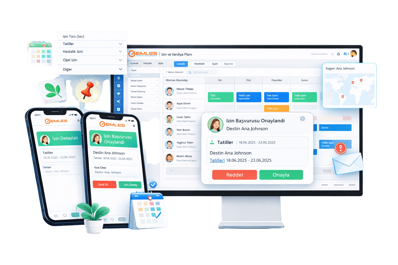 Haftalık izinler shift planı üzerinde düzenlenebilirken, diğer izin türleri ilgili parametrede shift ya da mobil uygulamada göster seçenekleri ile özelleştirilebilir. Mobil uygulama üzerinden talep edilen izinler ise onaylandıktan sonra otomatik olarak shift planına yansır.