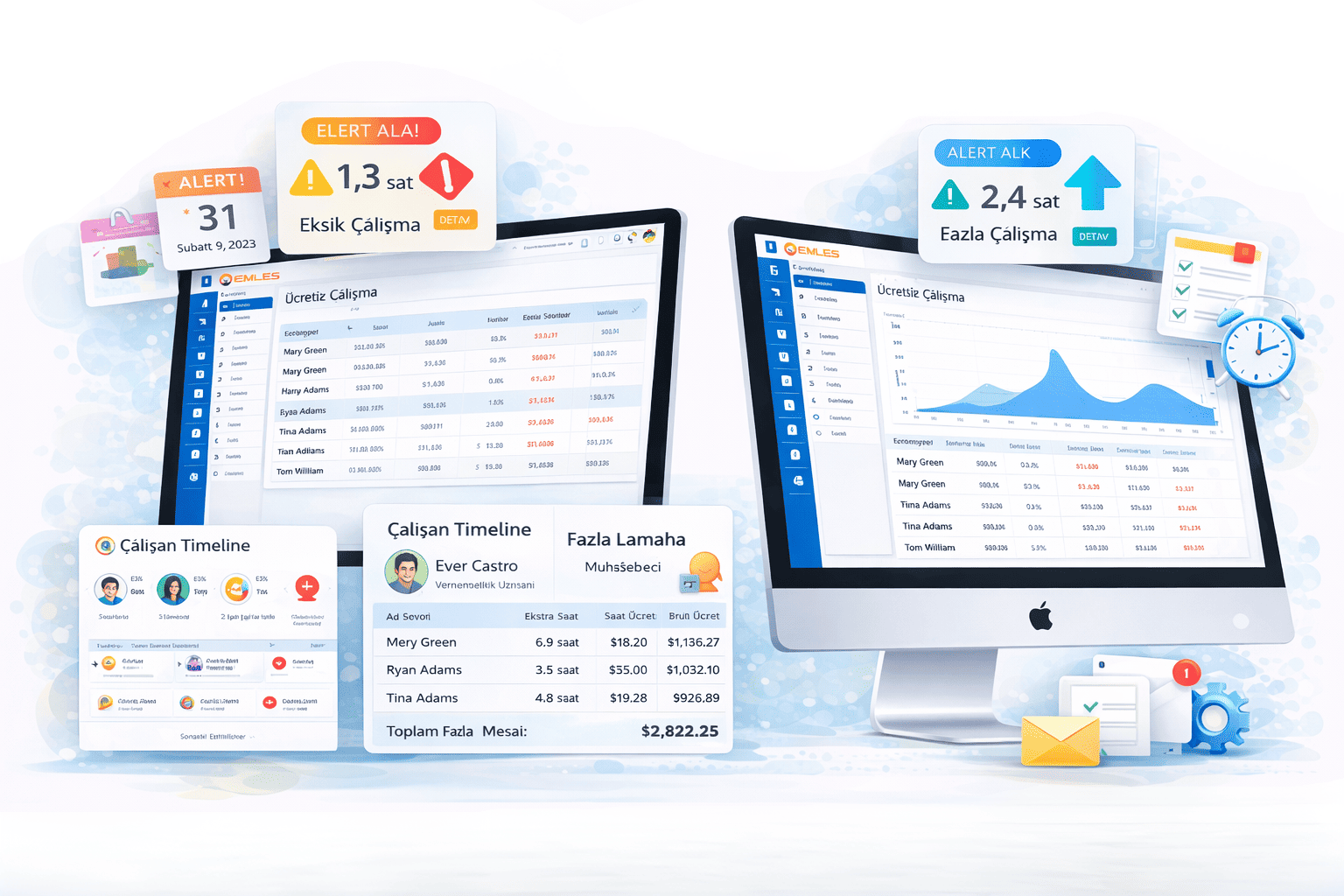 Emles Shift Yönetimi modülü, personellerin haftalık çalışma planlarını hızlı ve kolay şekilde oluşturmanızı sağlayan akıllı bir planlama çözümüdür. Kullanıcı dostu yapısı sayesinde vardiya planlarını dakikalar içinde hazırlayabilir, shift kopyalama ve pratik düzenleme özellikleri ile planlama sürecini büyük ölçüde hızlandırabilirsiniz. Böylece işletmeler zaman tasarrufu sağlarken, operasyonel süreçlerini daha düzenli ve verimli bir şekilde yönetebilir.